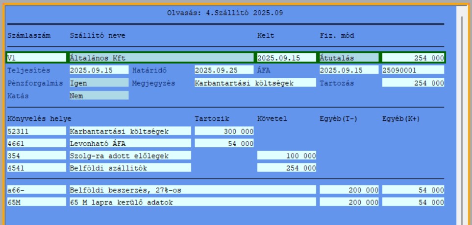 Szállítói számla esetén az előlegszámlát szállító számlának könyveljük, de az 5/8 számlaosztály helyett az adott előlegekre könyveljük a nettó értéket.